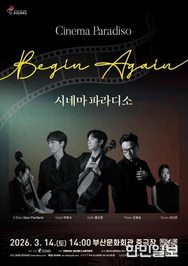 한민일보 서울포커스 임광현 기자 | (재)부산문화회관(대표이사 차재근)은 오는 3월 14일 오후 2시, 부산문화회관 중극장에서 영화음악 클래식 공연 ‘시네마 파라디소 '비긴 어게인(Begin Again)'’을 선보인다.
