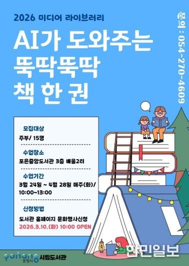 한민일보 서울포커스 임경복 기자 | 포항시립포은중앙도서관은 오는 24일부터 4월 28일까지 매주 화요일, 포은중앙도서관 배움2터에서 ‘2026 상반기 별찌인문교실’과 ‘미디어라이브러리’ 수업을 운영한다.
