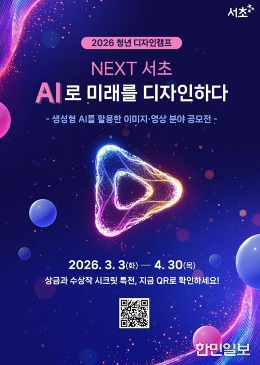 한민일보 서울포커스 곽중희 기자 | 서울 서초구는 인공지능(AI) 기술과 청년들의 창의적인 아이디어를 융합해 미래 도시 서초의 모습을 그려내는 ‘2026년 청년 AI 디자인 공모전’을 열고 다음달 30일까지 작품을 접수한다고 밝혔다.