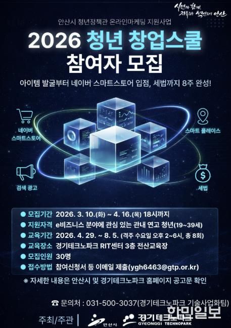 한민일보 서울포커스 임철현 기자 | 안산시는 e비즈니스 분야 청년 창업자의 안정적인 시장 진입과 사업 운영을 지원하기 위해 ‘청년 창업스쿨’ 참여자를 모집한다고 10일 밝혔다.