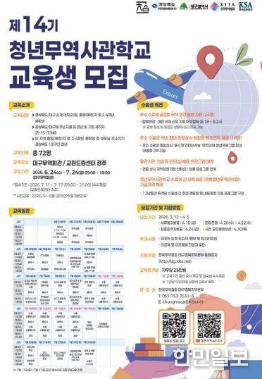 한민일보 서울포커스 김은금 기자 | 경상북도는 한국표준협회 및 한국무역협회와 함께 실무형 청년 무역인재 양성을 위한 제14기 청년 무역사관학교 교육생을 모집한다.