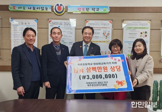 한민일보 서울포커스 임경복 기자 | 제주도교육청 북촌초등학교는 9일 국제로타리3662지구 제주중앙로타리클럽으로부터 약 300만 원 상당의 정보화 교육기기(복합기)를 학교발전기금으로 기탁받았다.