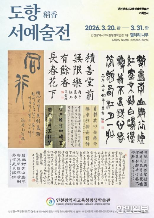 한민일보 서울포커스 유창렬 기자 | 인천광역시교육청평생학습관은 오는 3월 20일부터 31일까지 평생학습갤러리 '나무'와 '다솜'에서 ‘도향 서예술전’과 ‘매트릭스 너머’ 전시를 개최한다.