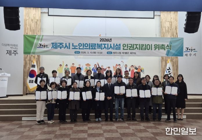 한민일보 서울포커스 김다남 기자 | 제주시는 10일 시청 1별관 회의실에서 ‘2026년 노인의료복지시설 인권지킴이 위촉식’을 개최하고, 인권지킴이 20명을 위촉했다.