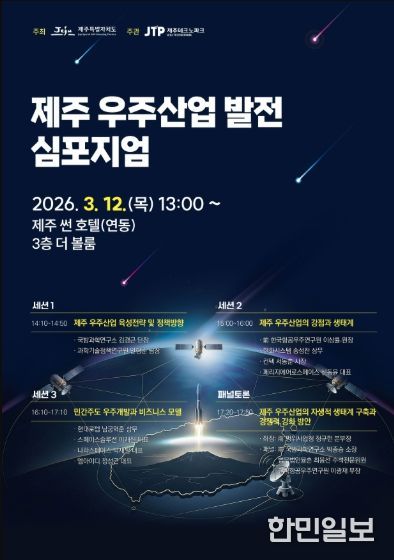제주특별자치도가 주최하고 제주테크노파크(원장 지영흔, 제주TP)가 주관하는 ‘제주 우주산업 발전 심포지엄’이 오는 12일과 13일 양일간 제주 썬호텔과 도내 주요 우주기업 현장에서 열린다.