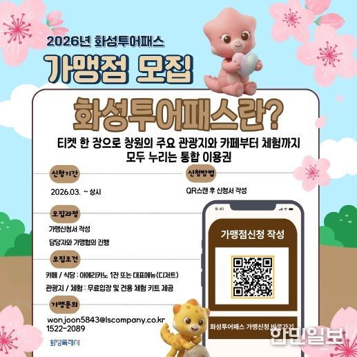 화성특례시 관계자는 “다채롭고 개성 있는 지역 업체들을 발굴해 관광객들에게 화성의 숨겨진 매력을 널리 알리고자 한다”며, “지역 소상공인과 상생할 수 있는 화성 투어패스 가맹점 모집에 많은 관심과 참여를 부탁드린다”고 전했다.
