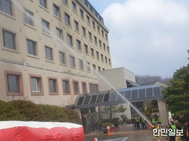 한민일보 서울포커스 김서윤 기자 | 울진소방서는 지난 12일 LG생활연수원을 대상으로 고층건축물 화재대응 및 전기자동차 화재진압 훈련을 실시했다.