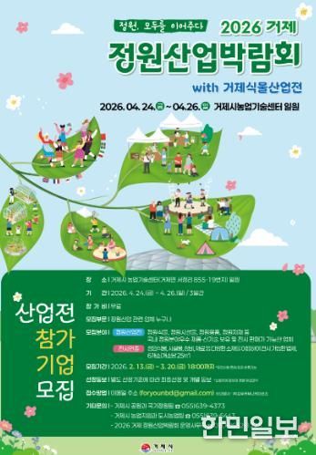 한민일보 서울포커스 김은금 기자 | 정원식물과 다양한 정원자재를 한자리에서 만나볼 수 있는‘2026 거제정원산업박람회’가 오는 4월 24일부터 26일까지 3일간 거제시 농업기술센터 일원에서 개최된다.