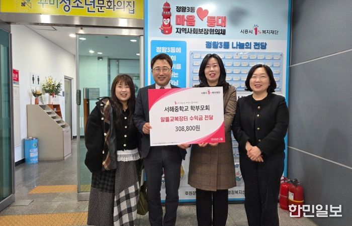 한민일보 서울포커스 유현민 기자 | 서해중학교 학부모회는 지난 3월 13일 정왕3동 저소득층을 돕기 위해 ‘알뜰 교복 장터’ 운영 수익금 30만8천800원을 기탁하며 지역사회에 온정을 전했다.