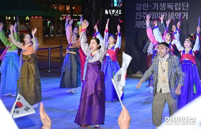 한민일보 서울포커스 김은금 기자 | 3.1운동 107주년을 기념해 지난 13일 오후 6시 30분 진주대첩 역사공원 호국마루에서 ‘진주걸인·기생독립단 만세운동’ 재현 행사가 열렸다.