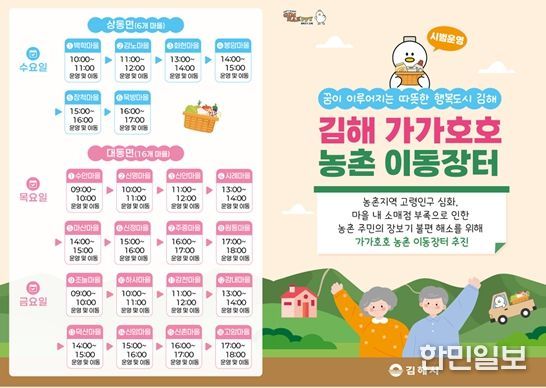 한민일보 서울포커스 김은금 기자 | 김해시는 농촌지역 주민들의 장보기 불편 해소로 생활편의를 높이기 위해 ‘가가호호 농촌 이동장터’를 시범 운영한다고 17일 밝혔다.