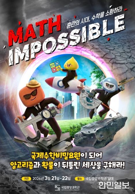 한민일보 서울포커스 기자 | 과학기술정보통신부 국립중앙과학관은 3월 21일부터 22일까지 양일간, 관람객이 주인공이 되어 수학적 사고로 위기를 극복하는 임무형(미션형) 수학 행사 ‘Math Impossible: 혼란의 시대, 수학을 소환하라!’를 개최한다.