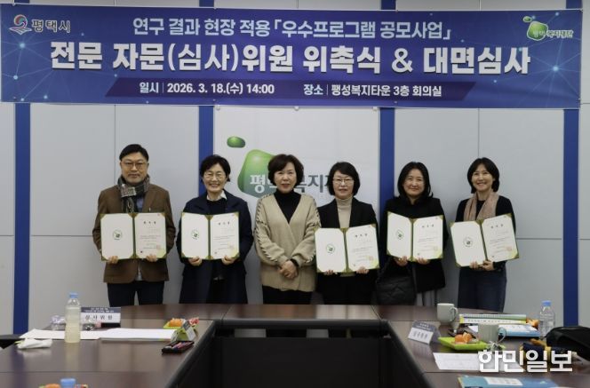 한민일보 서울포커스 황준형 기자 | 평택복지재단은 2026년 3월 18일, 팽성복지타운에서 관내 사회복지 서비스의 질적 도약과 지역복지 강화를 위한녪년 연구 결과 현장 적용 우수프로그램 공모사업’심사위원 위촉식 및 대면 심사를 진행했다.