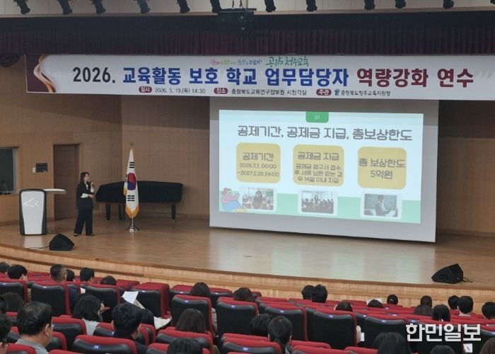 한민일보 서울포커스 김다남 기자 | 청주교육지원청은 3월 19일 충청북도교육연구정보원 시청각실에서 청주 지역 유·초·중·고·특수학교 등 교육활동보호 업무담당 교원 230여 명을 대상으로 '2026년 교육활동보호 학교업무담당자 역량강화 연수'를 실시했다.