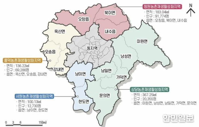 시는 국비 126억원을 포함한 총사업비 180억원을 투입해 미원면 어울림거점센터와 문의면 대청다락행복센터 조성 사업을 추진하고 있으며, 가덕면·남일면·낭성면 배후마을과 연계한 프로그램 운영을 위한 상당생활권 기본계획 수립을 완료했다.