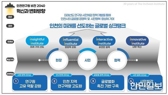 먼저, 「인천연구원 비전 2040」을 통해 “인천의 미래를 선도하는 글로벌 싱크탱크”로의 도약을 선포할 예정이다.