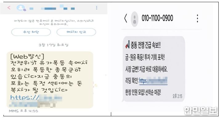 1. [유가·방산 화제주 빙자 투자리딩방 유인] 최근, 이른바 ‘전쟁 수혜주’ 투자를 통한 고수익을 보장한다는 미끼 문자가 대량 살포되고 있다.