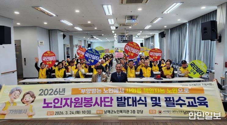 한민일보 서울포커스 김서윤 기자 | (사)대한노인회 남해군지회는 지난 24일 남해군 노인복지관 3층 대강당에서 소속 10개 단체 200여 명의 자원봉사 단원이 참석한 가운데 ‘2026년도 남해군 노인자원봉사단 발대식 및 노인자원봉사자 교육’을 성황리에 개최했다.