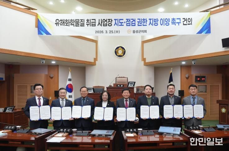 한민일보 서울포커스 김다남 기자 | 음성군의회는 3월 25일 제387회 임시회 제5차 본회의에서 ‘유해화학물질 취급 사업장 지도·점검 권한 지방 이양 촉구 건의문’을 채택하고, 군민의 생명과 안전을 지키기 위한 제도 개선을 정부와 국회에 촉구했다.
