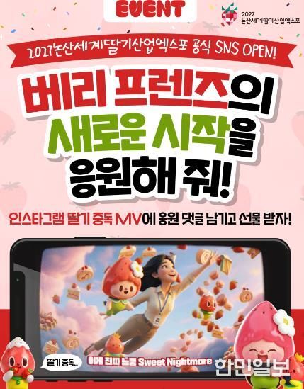 한민일보 서울포커스 박덕환 기자 | 논산세계딸기산업엑스포조직위원회는 ‘2027 논산세계딸기산업엑스포’ 공식 SNS 채널 오픈을 기념해 팔로우 이벤트를 진행한다고 밝혔다.