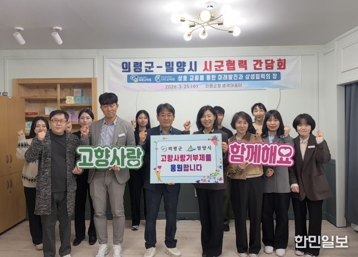 한민일보 서울포커스 김은금 기자 | 의령군은 25일 군청에서 밀양시와 시군협력 간담회를 열고 미래교육 분야 협력과 상생발전 방안을 논의했다고 밝혔다.