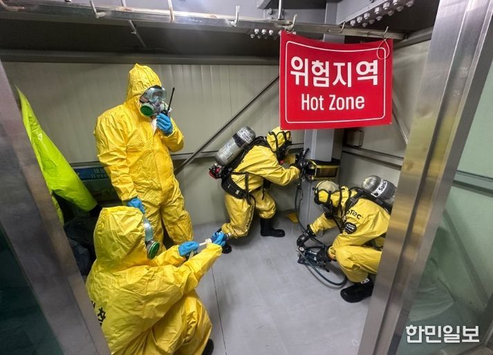 이번 훈련은 화학보호복 착용법 숙달과 각종 탐지장비에 대한 교육 실시 후 물질탐지, 유출부위 봉쇄, 방제조치 등의 순으로 해상화학사고 초기대응 역량 제고에 중점을 두고 있다.