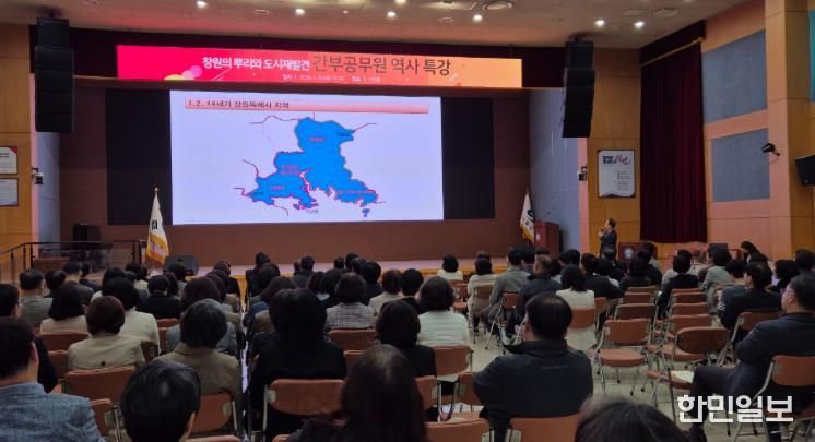 한민일보 서울포커스 김서윤 기자 | 창원특례시는 지난 26월 시청 시민홀에서 4·5급 간부 공무원 200명을 대상으로 창원 지역 땅이름의 역사 특강을 실시했다.