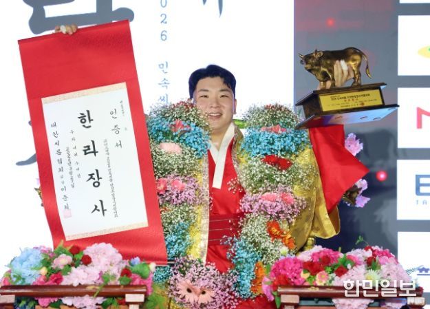 한민일보 서울포커스 최성훈 기자 | 울주군 해뜨미씨름단 소속 김무호(23) 선수가 지난 27일 충청북도 단양군 단양체육관 동관에서 열린 ‘위더스제약 2026 민속씨름 단양온달장사씨름대회’에서 한라장사에 등극했다.