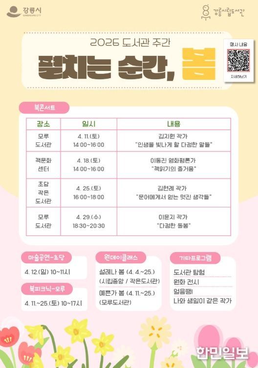 한민일보 서울포커스 임경복 기자 | 강릉시립도서관은 2026년 도서관 주간을 맞이하여 4월 한 달간 시민들을 위한 다채로운 독서 문화 행사를 개최한다고 밝혔다.
