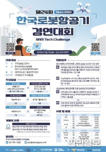 한민일보 서울포커스 김은금 기자 | 진주시는 우주항공청과 공동 주최하는 ‘제24회 한국로봇항공기 경연대회’의 참가팀 모집을 시작했다고 밝혔다.