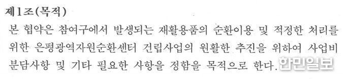 은평광역자원순환센터는 2019년 2월 은평·서대문·마포구가 체결한 협약에 따라 조성된 시설이다. 이 협약은 단순한 비용 분담을 넘어, 3개 자치구가 폐기물을 상호 교차 처리하여 환경 문제를 공동으로 해결하겠다는 공적 약속이었다.