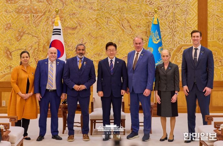한민일보 서울포커스 김윤이 기자 | 이재명 대통령은 3월 31일 오후 청와대에서 아미 베라(Ami Bera) 하원 동아태소위원회 간사 등 공화·민주 양당 의원으로 구성된 미국 의회 코리아스터디그룹 대표단을 접견하고 최근 중동 전쟁, 한미관계, 한반도 문제 등에 대해 의견을 나눴다.