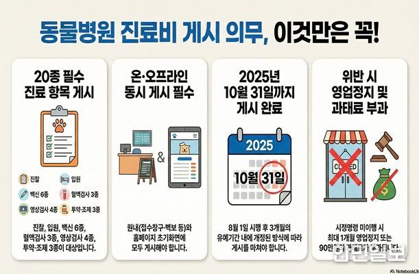 이번 점검은 2025년 8월 시행된 동물병원 진료비 게시제도의 적정 이행 여부와 전반적인 운영 실태를 확인하기 위해 추진된다.