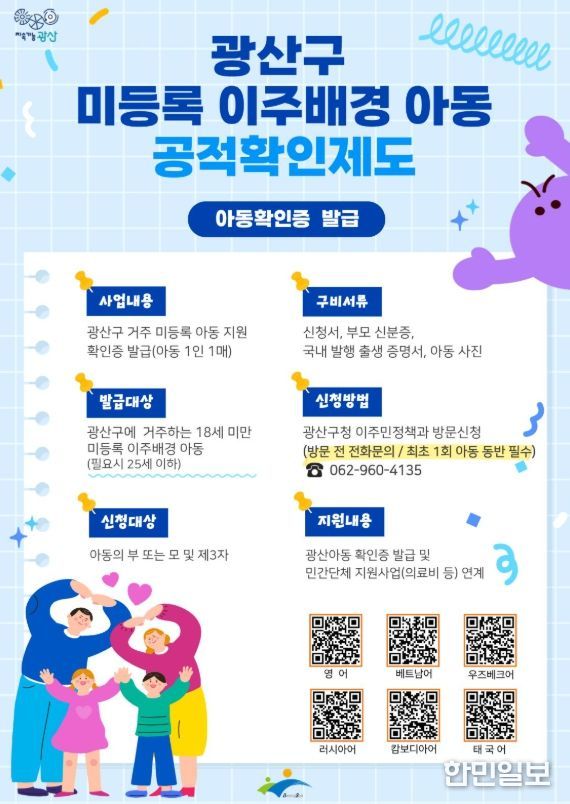 한민일보 서울포커스 임경복 기자 | 광주 광산구가 광주 최초로 미등록 이주배경 아동의 기본권 보호를 위한 공적 확인제도를 시행한다.