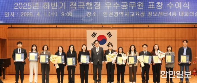 한민일보 서울포커스 유창렬 기자 | 인천광역시교육청은 1일 정보센터 대회의실에서 ‘2025년 하반기 적극행정 우수공무원 표창 수여식’을 개최했다.