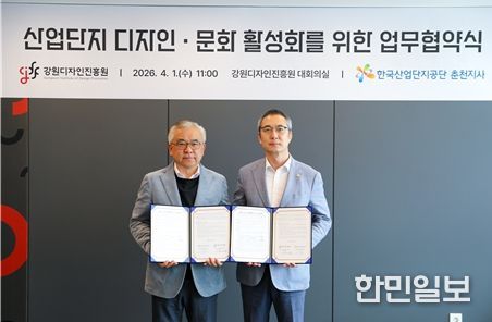 한민일보 서울포커스 곽중희 기자 | 강원디자인진흥원은 1일 강원디자인진흥원 대회의실에서 한국산업단지공단 강원지역본부 춘천지사와 산업단지 내 디자인·문화 활성화를 위한 공동사업 추진 업무협약을 체결했다고 밝혔다.