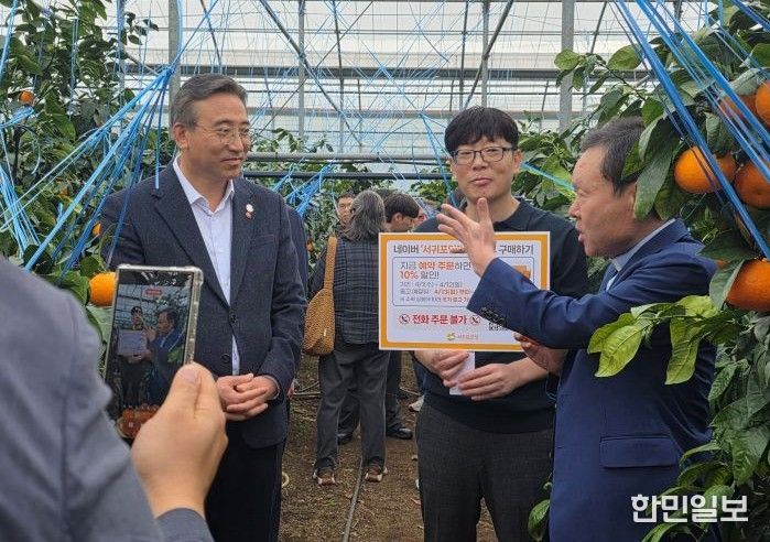 한민일보 서울포커스 김다남 기자 | 서귀포시는 4월 1일, 감귤박물관과 카라향 하우스 일원에서 4월 출하를 앞둔 서귀포산 카라향 홍보를 위해 황창연 신부 영상 촬영에 오순문 서귀포시장이 동반 출연해 카라향 등 만감류 소비 촉진을 호소했다.