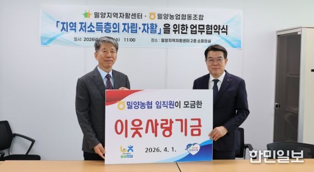이번 협약을 통해 양 기관은 지역 내 기부문화 확산과 저소득층 지원을 위한 협력체계를 구축하고 저소득층 자립·자활 지원을 위한 협력을 강화하기로 했다. 특히 이날 협약식에서는 밀양농협 임직원들이 자발적으로 모금한 ‘사랑의 기금’ 300만원을 센터에 전달하며 나눔의 의미를 더했다.