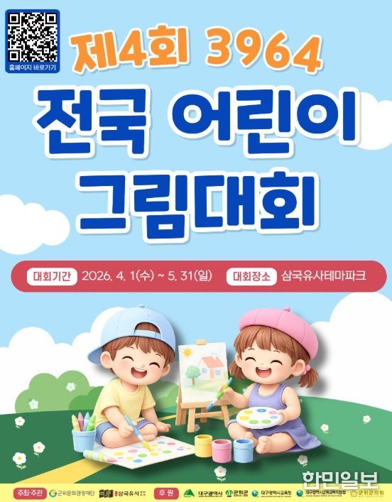 한민일보 서울포커스 김봉순 기자 | 군위문화관광재단이 주최하는‘제4회 3964 전국 어린이 그림대회’가 올해부터 개최 시기와 운영 방식을 전면 개편하여 새롭게 찾아온다.