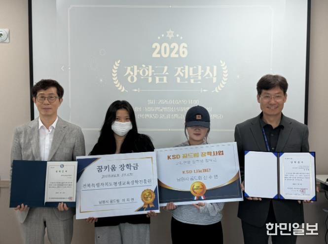 한민일보 서울포커스 박용남 기자 | 남원시학교밖청소년지원센터는 지난 2일 전북특별자치도평생교육진흥원과 KSD나눔재단이 추진하는 장학사업을 통해 소속 학교 밖 청소년이 장학생으로 선발됐다고 밝혔다.