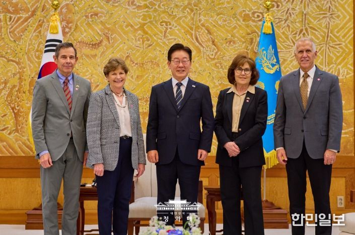 한민일보 서울포커스 김윤이 기자 | 이재명 대통령은 4월 2일 오후 청와대에서 진 섀힌(Jeanne Shaheen) 상원 외교위원회 간사 등 공화·민주 양당 의원으로 구성된 미국 상원의원 대표단을 접견했다. 이 대통령과 미 대표단은 한미동맹 및 한반도 문제를 비롯해 중동 전쟁의 안보적·경제적 파장과 대응 방안에 대해 심도 있는 의견을 교환하고, 향후 경제적 여파 대응 과정에서 한미가 긴밀히 소통해 나가는 것이 중요하다는 점에 뜻을 같이 했다.
