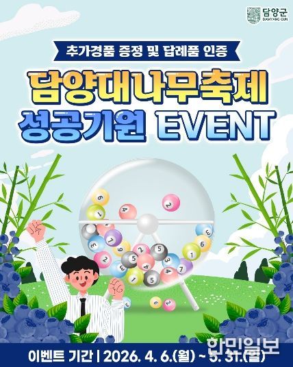 한민일보 서울포커스 임경복 기자 | 담양군이 ‘제25회 담양대나무축제’의 성공적인 개최를 기원하고 고향사랑기부 참여 문화를 확산시키기 위해 4월 6일부터 특별 이벤트를 진행한다.