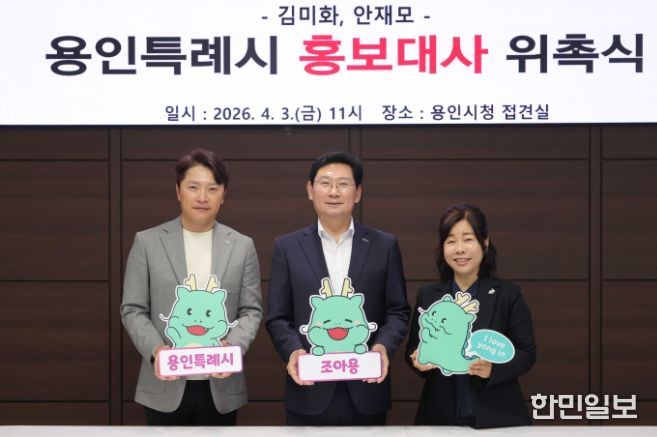 한민일보 서울포커스 김성윤 기자 | 용인특례시는 3일 용인 시민인 방송인 김미화씨와 배우 안재모씨를 홍보대사로 위촉했다.