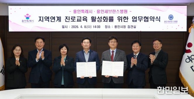 한민일보 서울포커스 김성윤 기자 | 용인특례시는 8일 시청 접견실에서 용인세브란스병원과 ‘지역연계 진로 교육 활성화를 위한 업무협약’을 체결했다.