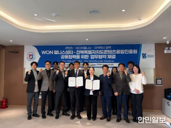 한민일보 서울포커스 임철현 기자 | 전북특별자치도 콘텐츠융합진흥원과 원광대학교 WON 웰니스센터(센터장 최미숙)은 콘텐츠와 웰니스 분야 연계를 위한 협력 방안을 마련하고, 상호 협력 기반 구축을 위한 논의를 진행하고 있다고 밝혔다.