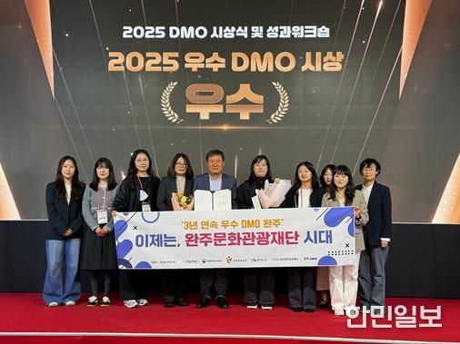 한민일보 서울포커스 박용남 기자 | 완주문화관광재단은 지난 8일 서울 정동 1928아트센터에서 열린 ‘2025년 우수 DMO 시상식’에서 전국 22개 지자체 중 A등급을 획득, 3년 연속 ‘우수’등급 달성과 함께 한국관광공사 사장상을 수상했다고 밝혔다.
