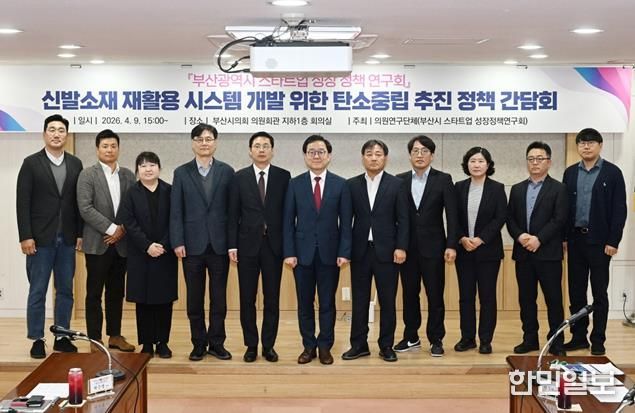한민일보 서울포커스 임광현 기자 | 부산광역시의회 의원연구단체인 '부산광역시 스타트업 성장 정책 연구회'는 4월 9일 오후 3시, 부산시의회 의원회관 회의실에서 ‘신발소재 재활용 시스템 개발을 통한 탄소중립 추진 정책 간담회’를 개최했다.