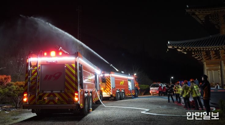 특히 대형산불 특별대책기간에 맞춰 야간 산불 발생 시 민가 등 인근 시설물을 보호하는 초동 대응 훈련에 중점을 뒀다.