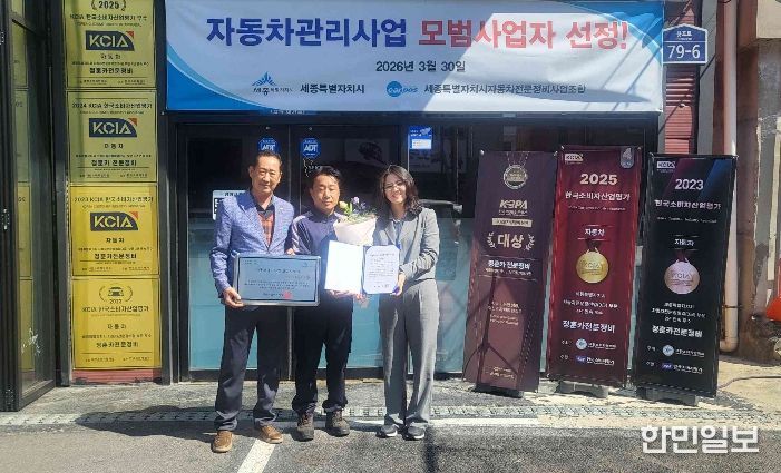 한민일보 서울포커스 김윤이 기자 | 세종특별자치시가 자동차관리사업의 서비스 질 향상과 건전한 사업자 육성을 위해 2026년도 자동차관리사업 모범사업자를 지정하고 지정증과 현판을 전달했다고 13일 밝혔다.