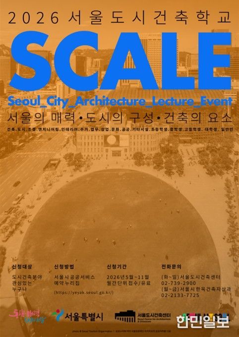 올해 12주년을 맞는 서울도시건축학교(SCALE)는 강좌·체험·답사 세 가지 형태로 구성된다. 지난해 1,343명이 참여해 4대1 경쟁률과 97% 만족도를 기록했으며, 올해는 서울건축문화제 연계 특별과정을 더해 내용을 한층 확장했다.